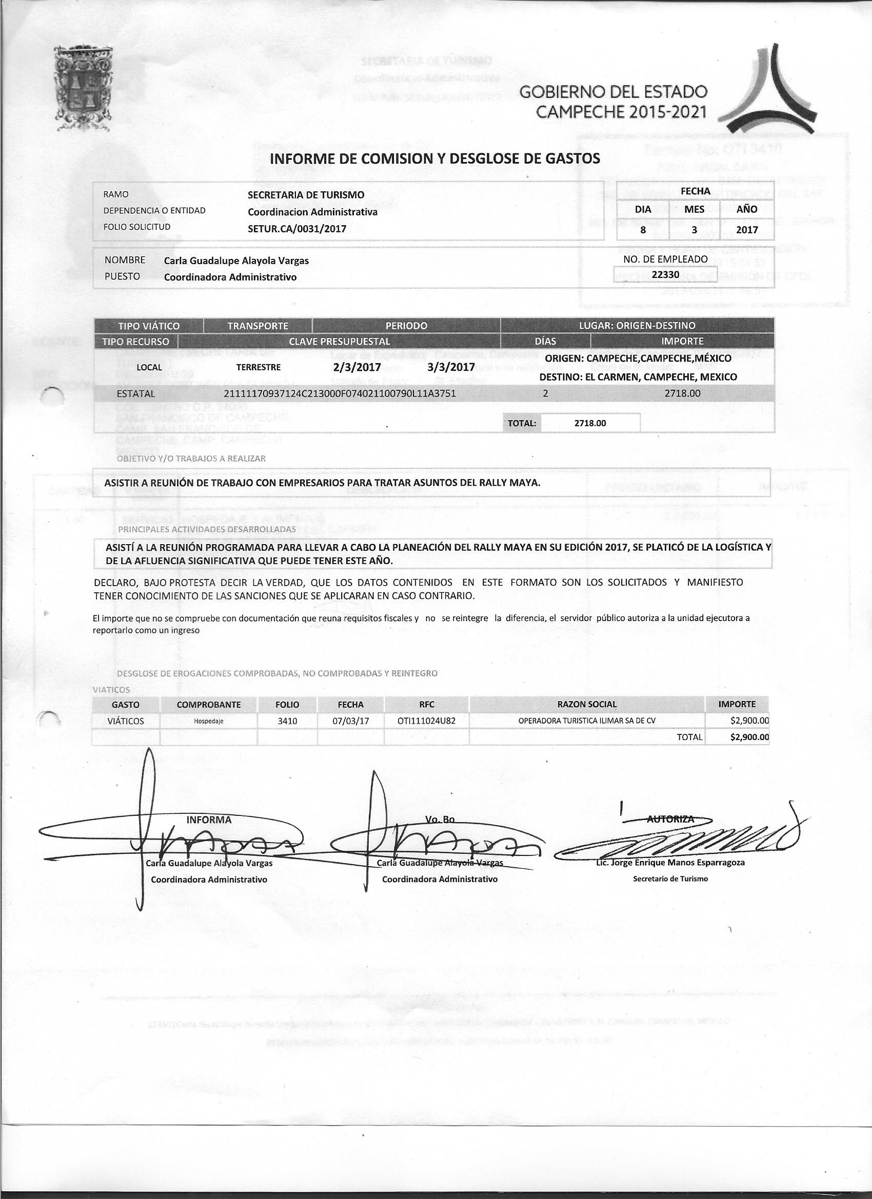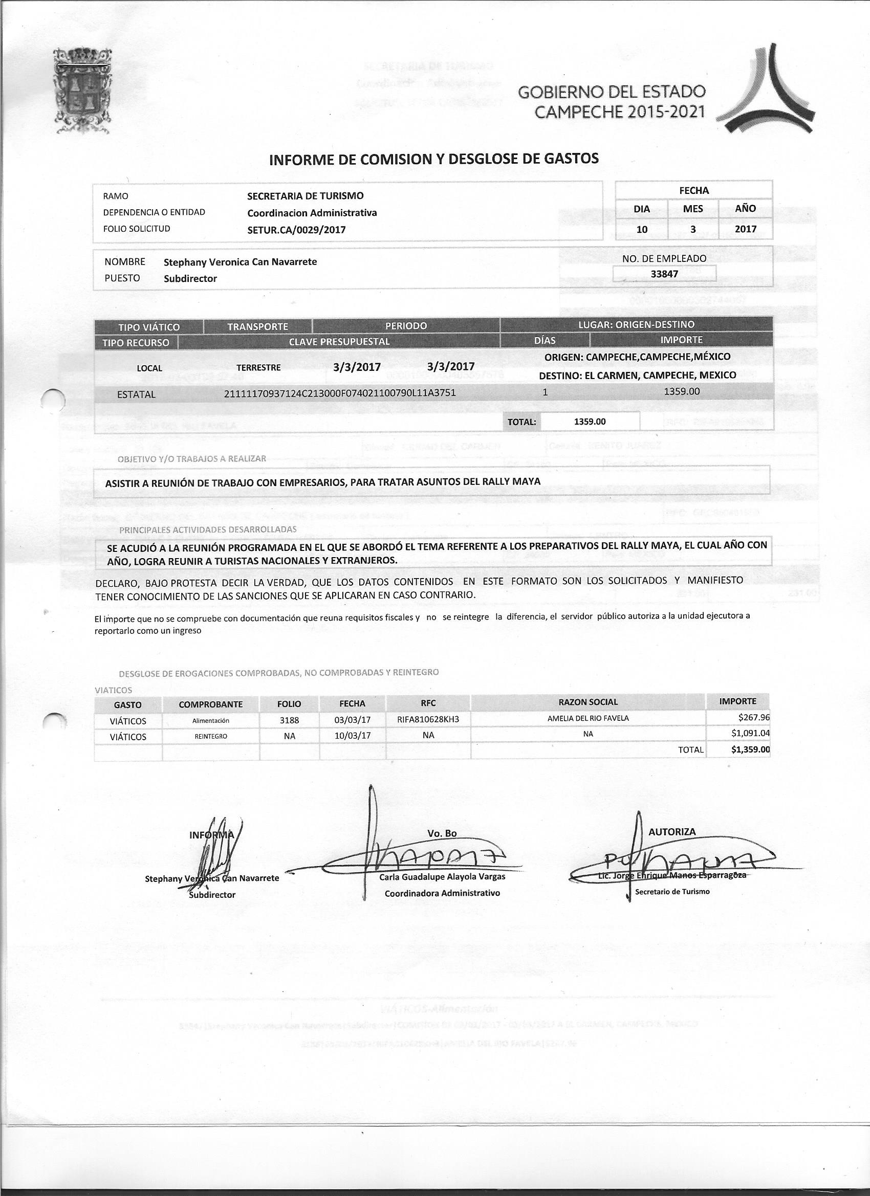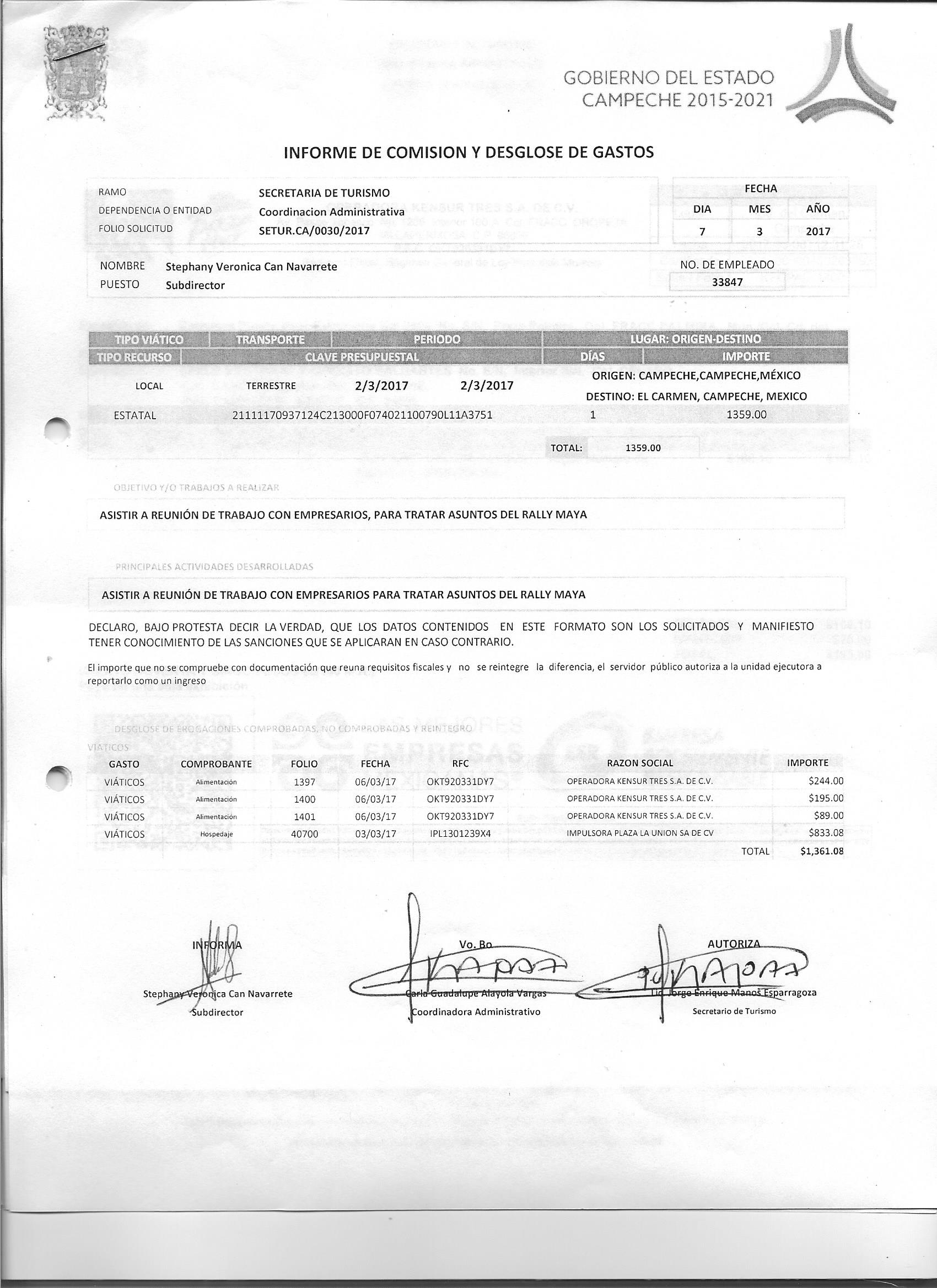 Los gastos de representación y viáticos, así como el objeto e informe de comisión correspondiente;