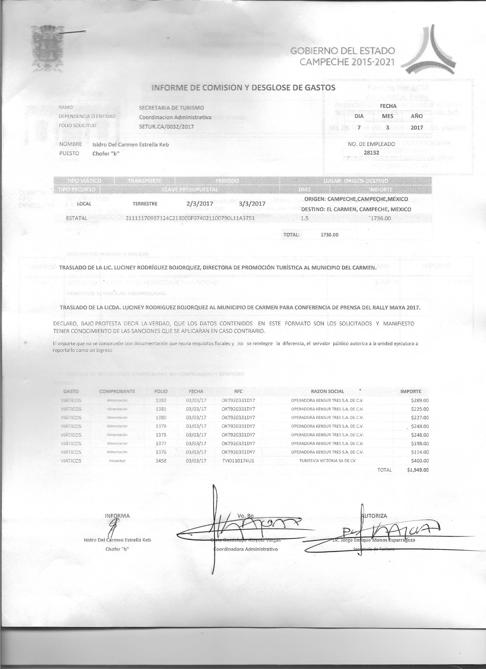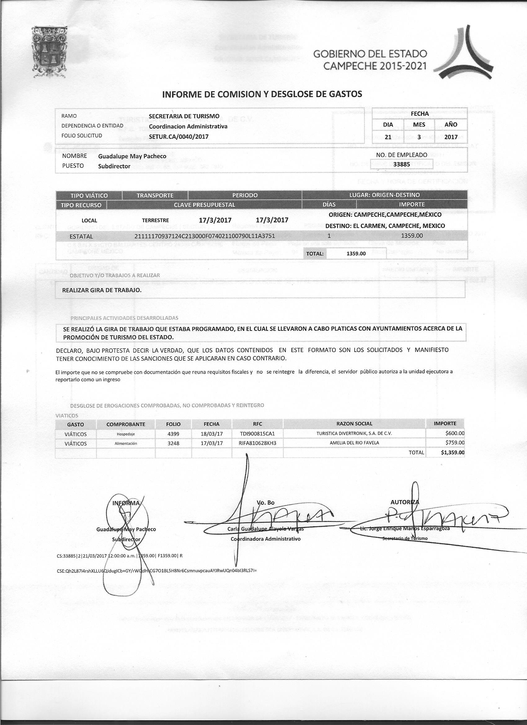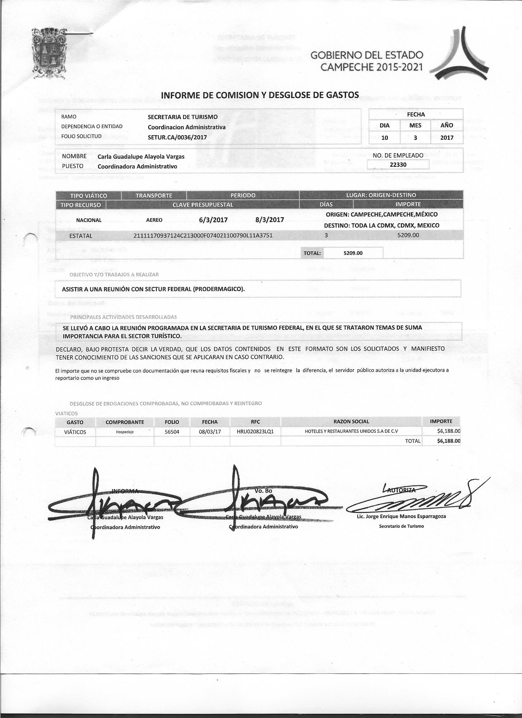Los gastos de representación y viáticos, así como el objeto e informe de comisión correspondiente;