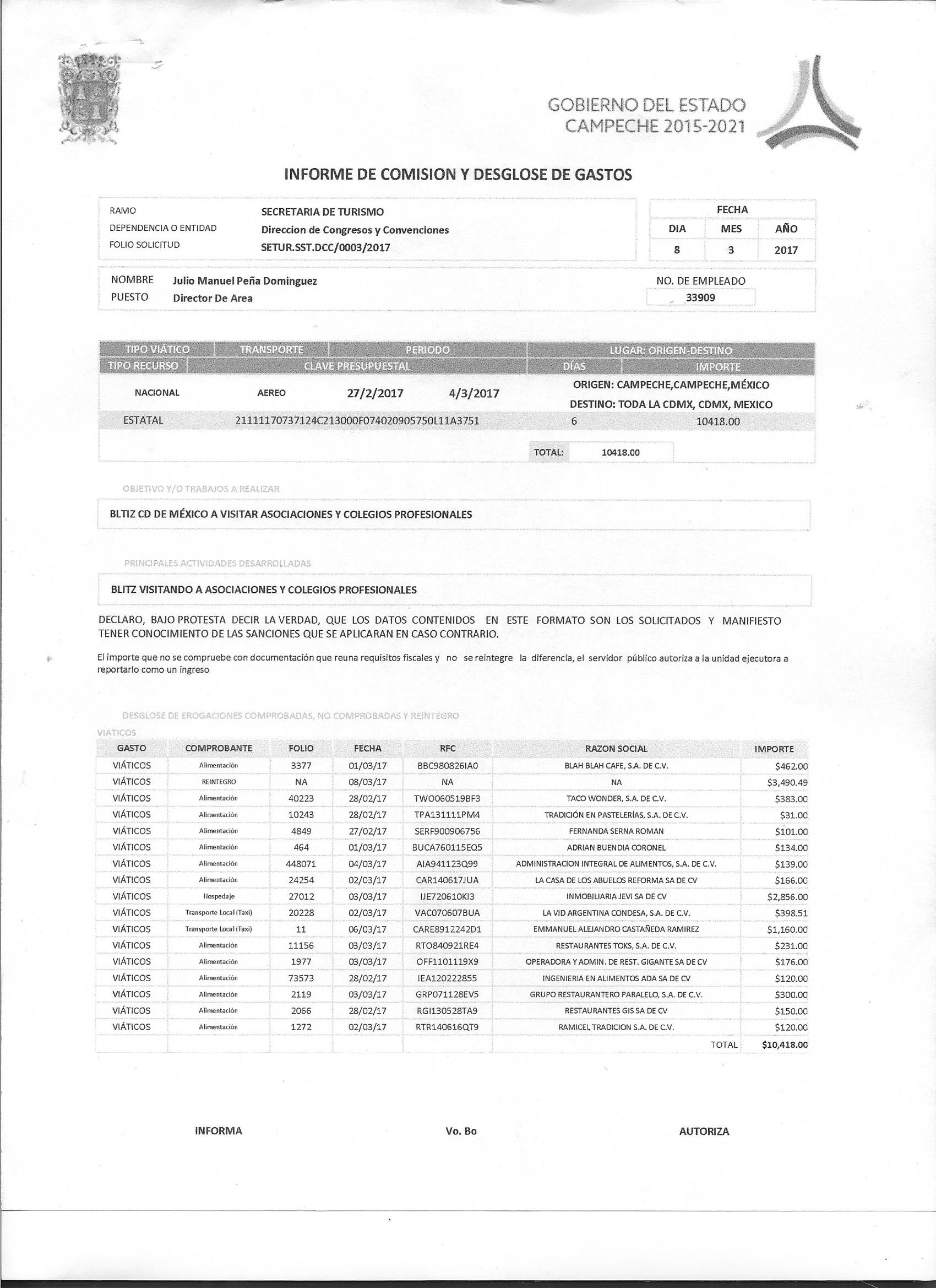 Los gastos de representación y viáticos, así como el objeto e informe de comisión correspondiente;