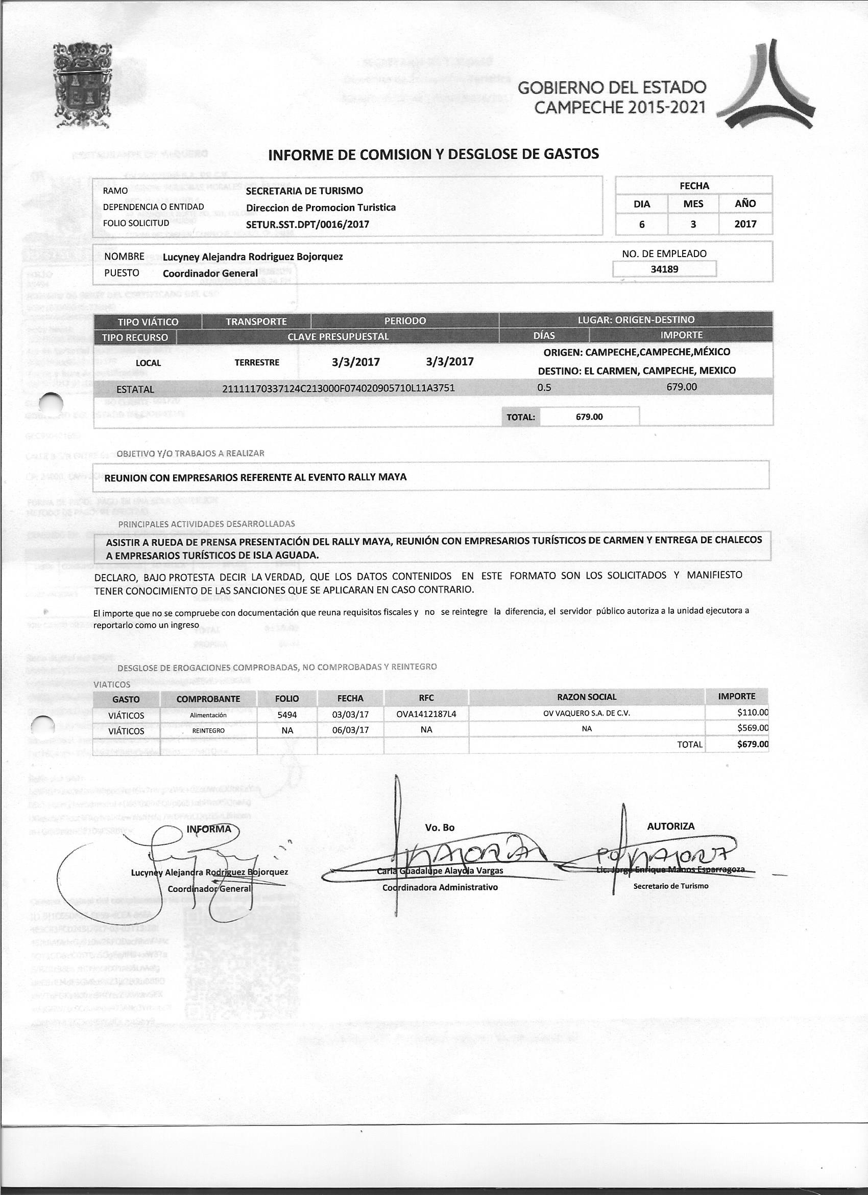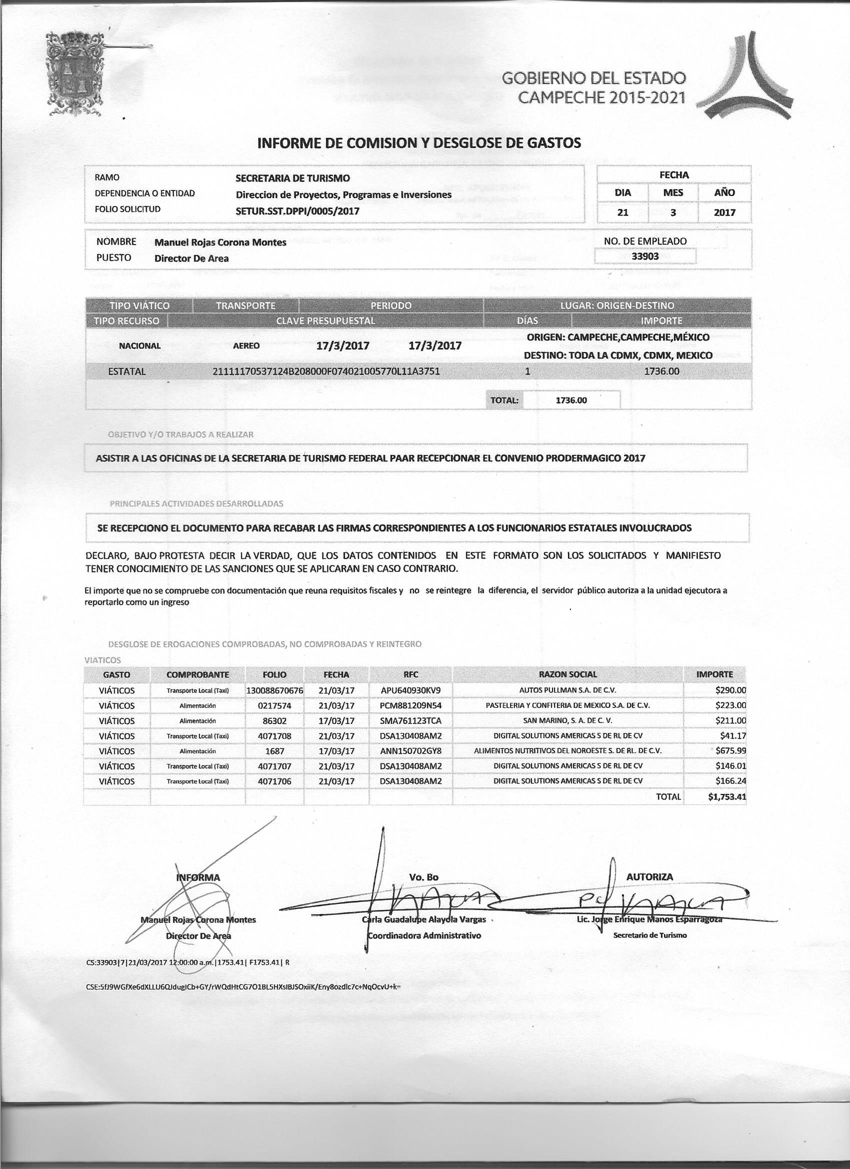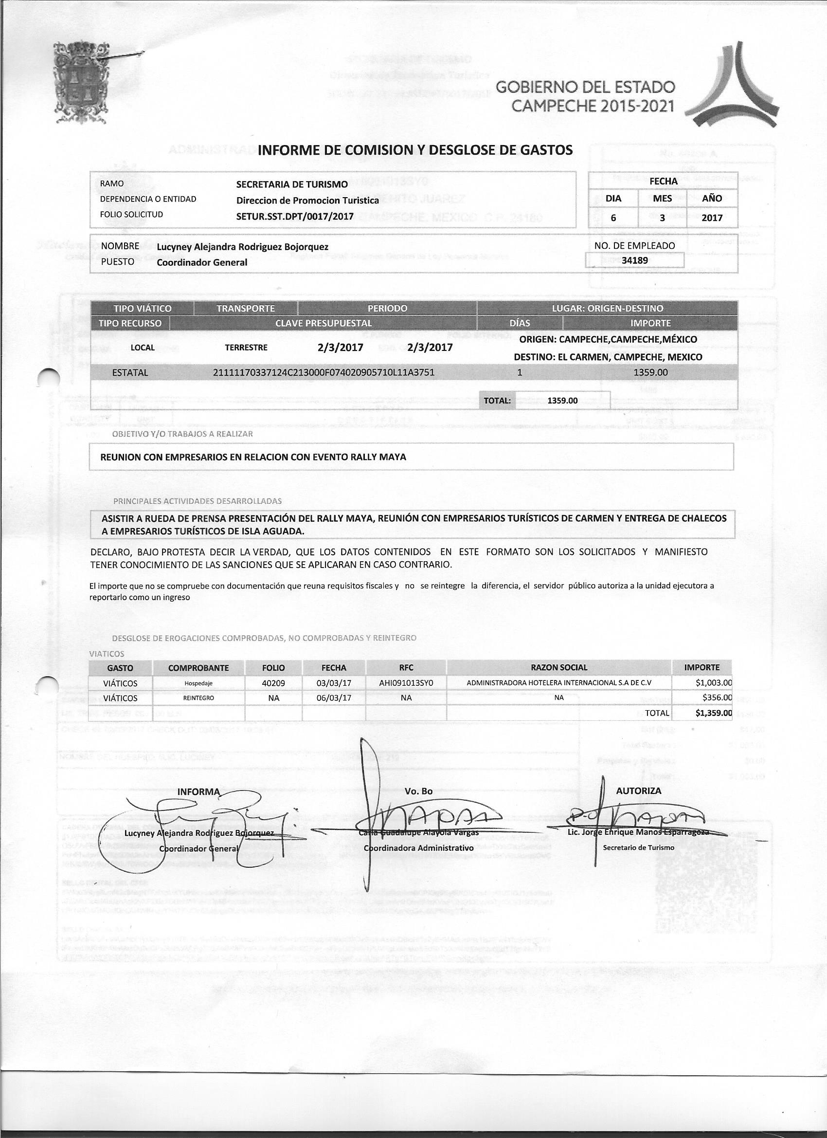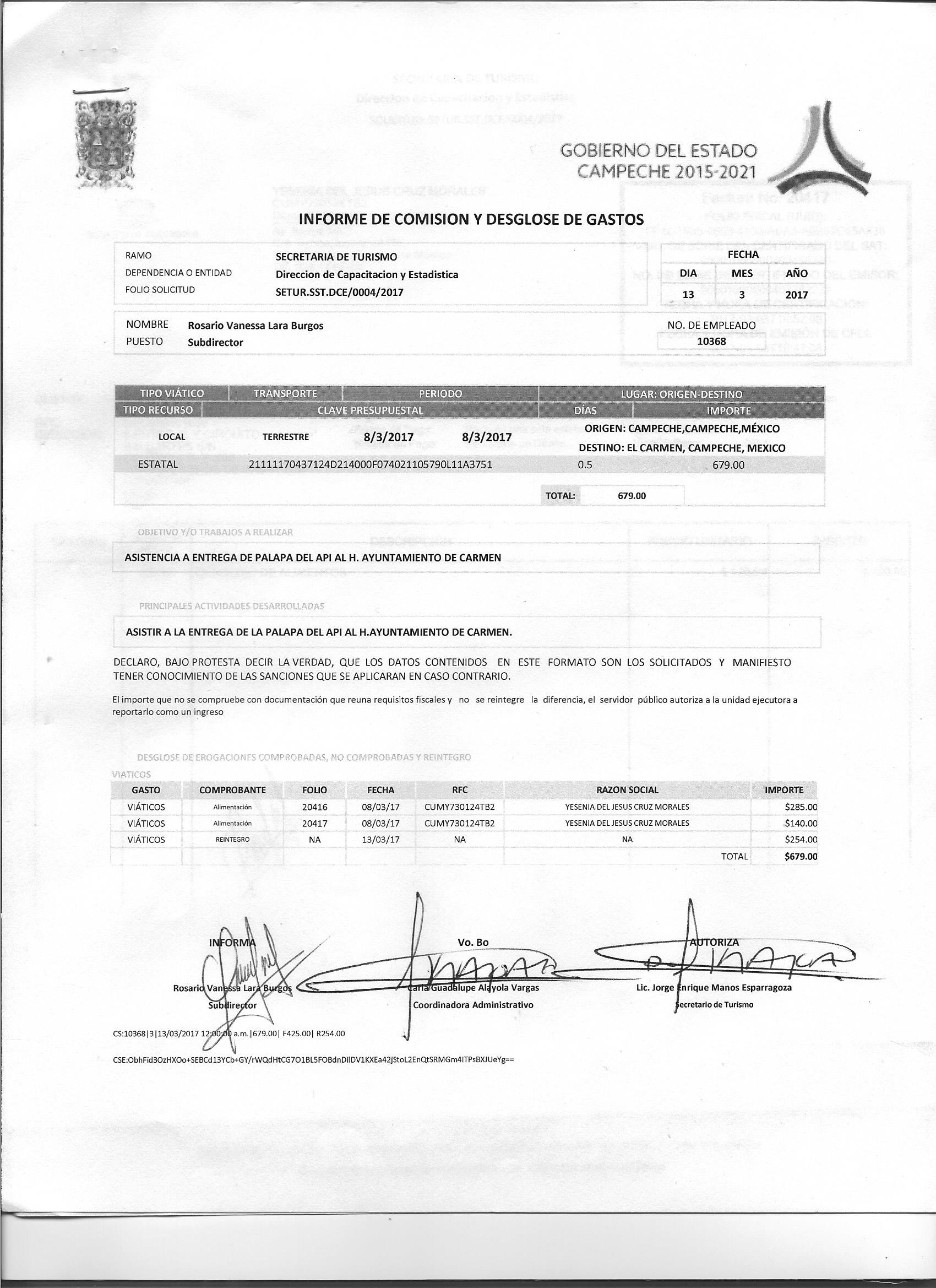 Los gastos de representación y viáticos, así como el objeto e informe de comisión correspondiente;