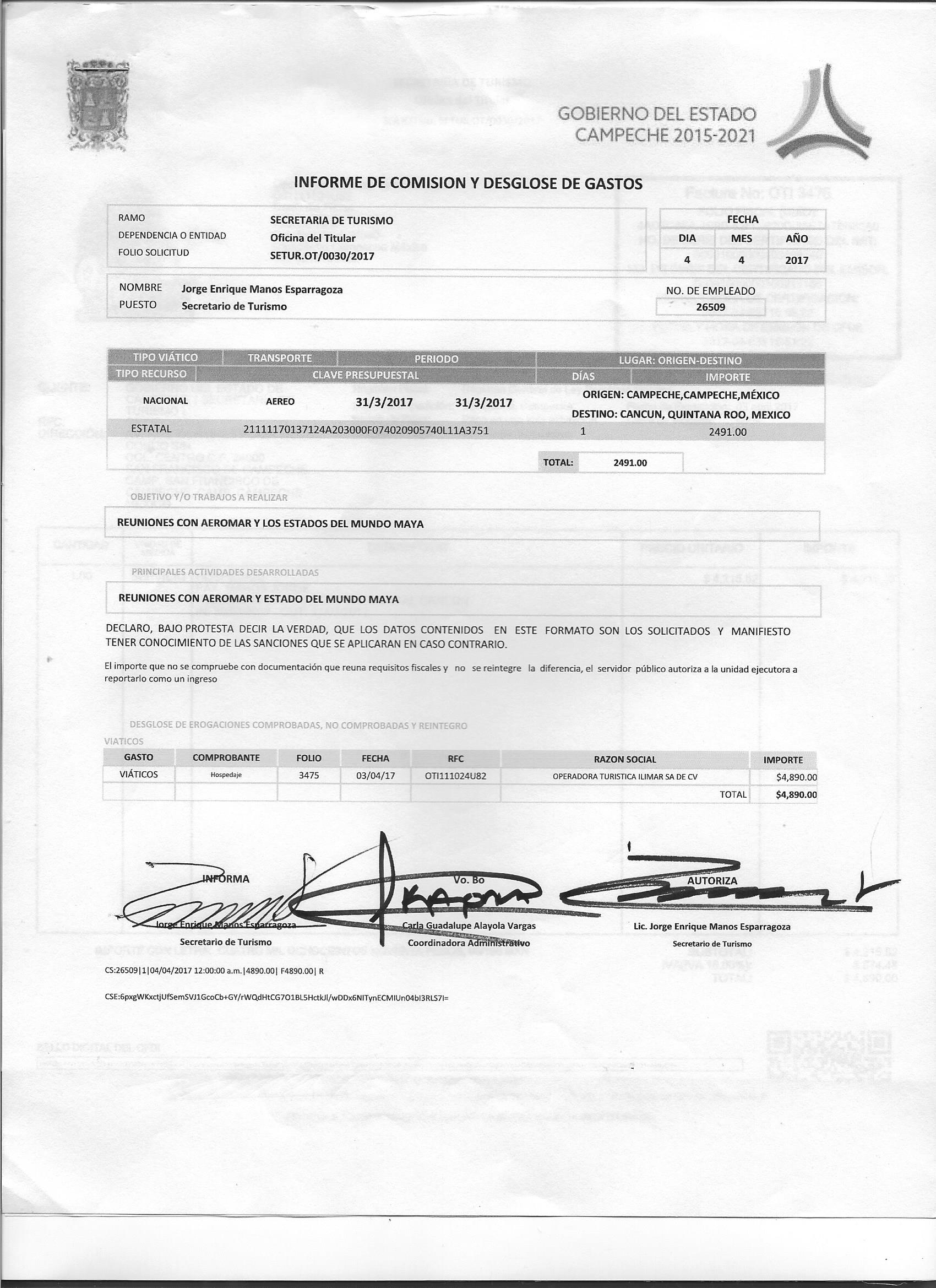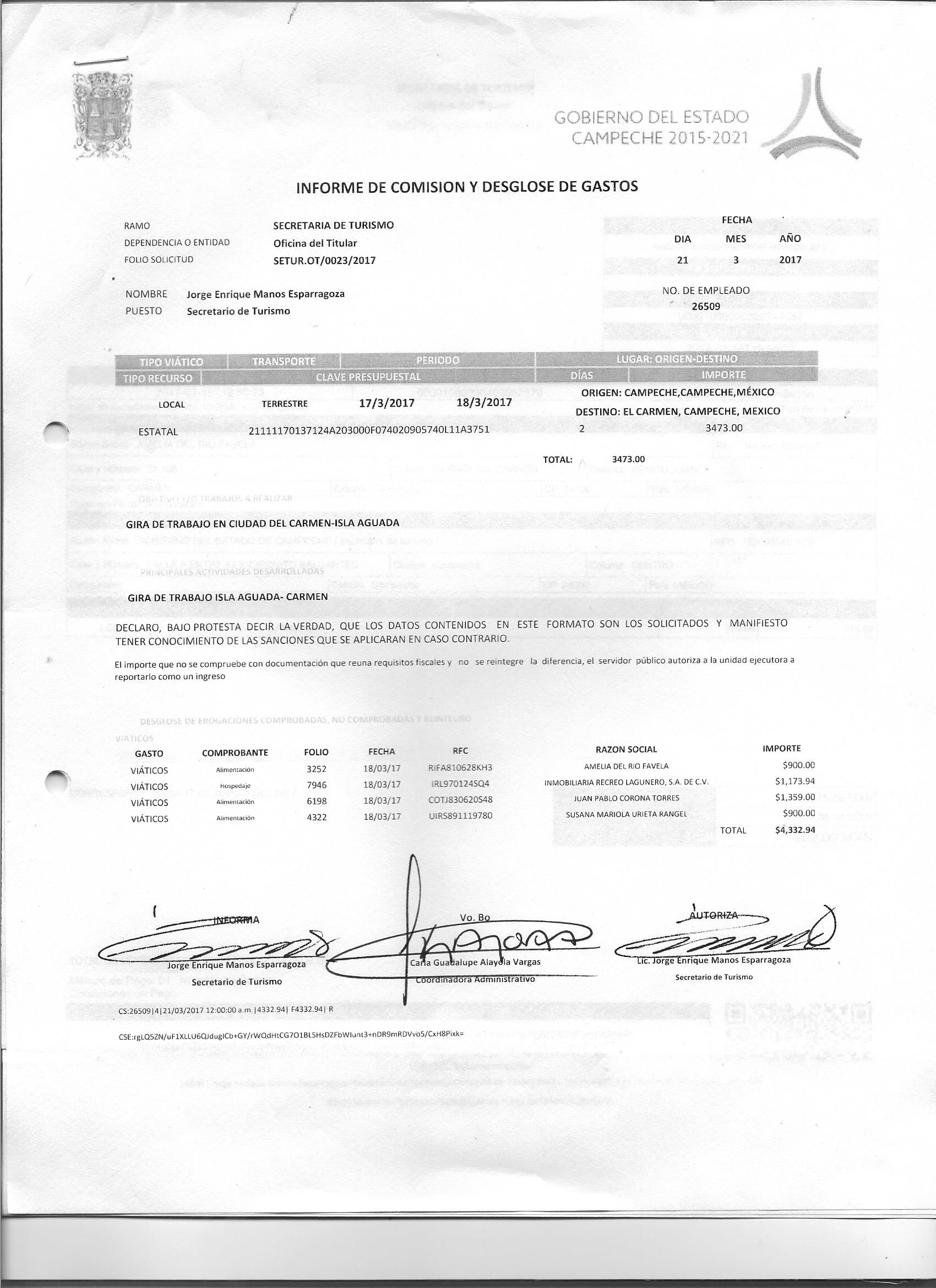 Los gastos de representación y viáticos, así como el objeto e informe de comisión correspondiente;