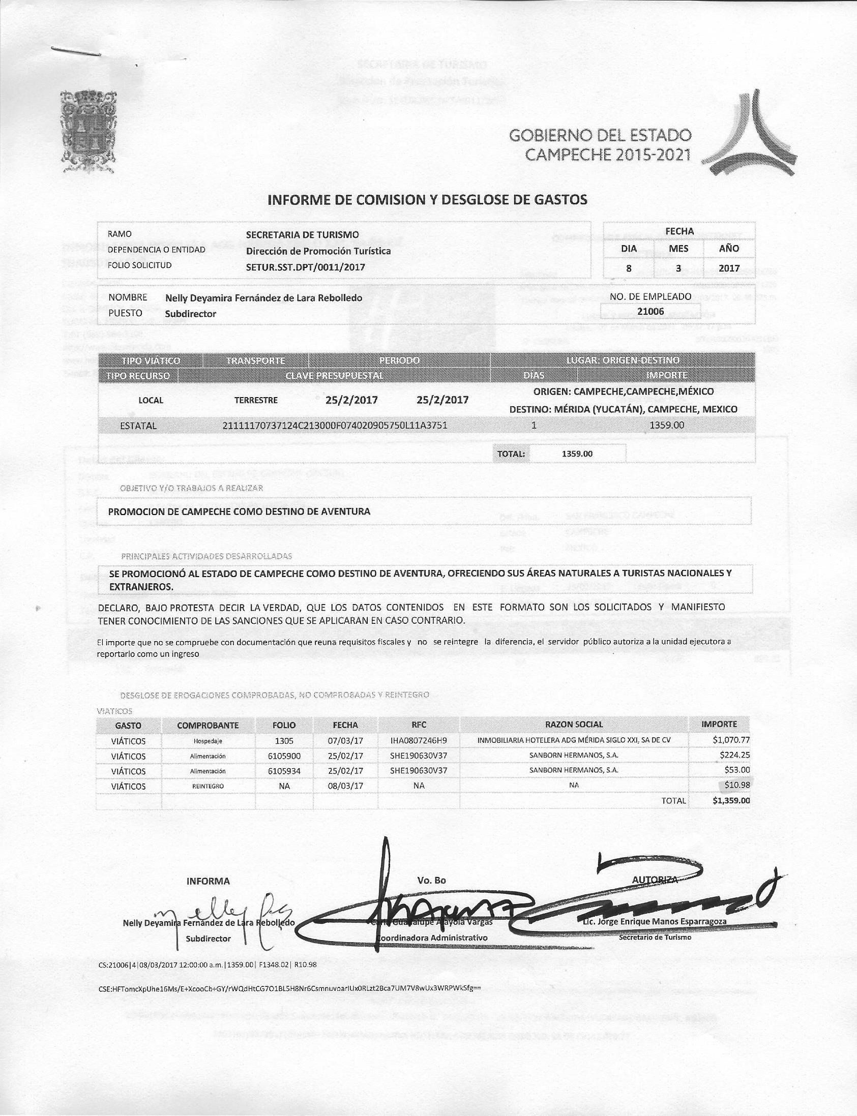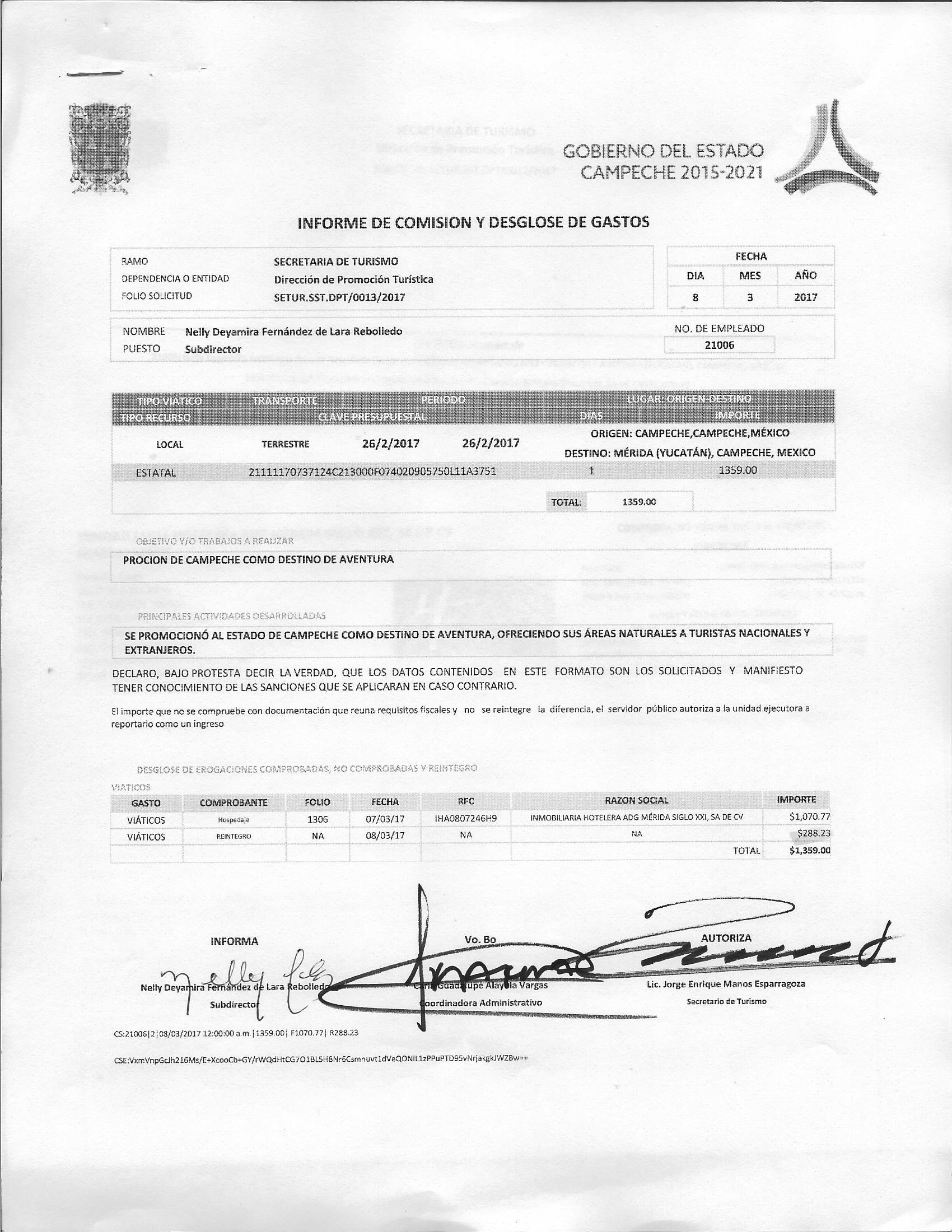Los gastos de representación y viáticos, así como el objeto e informe de comisión correspondiente;