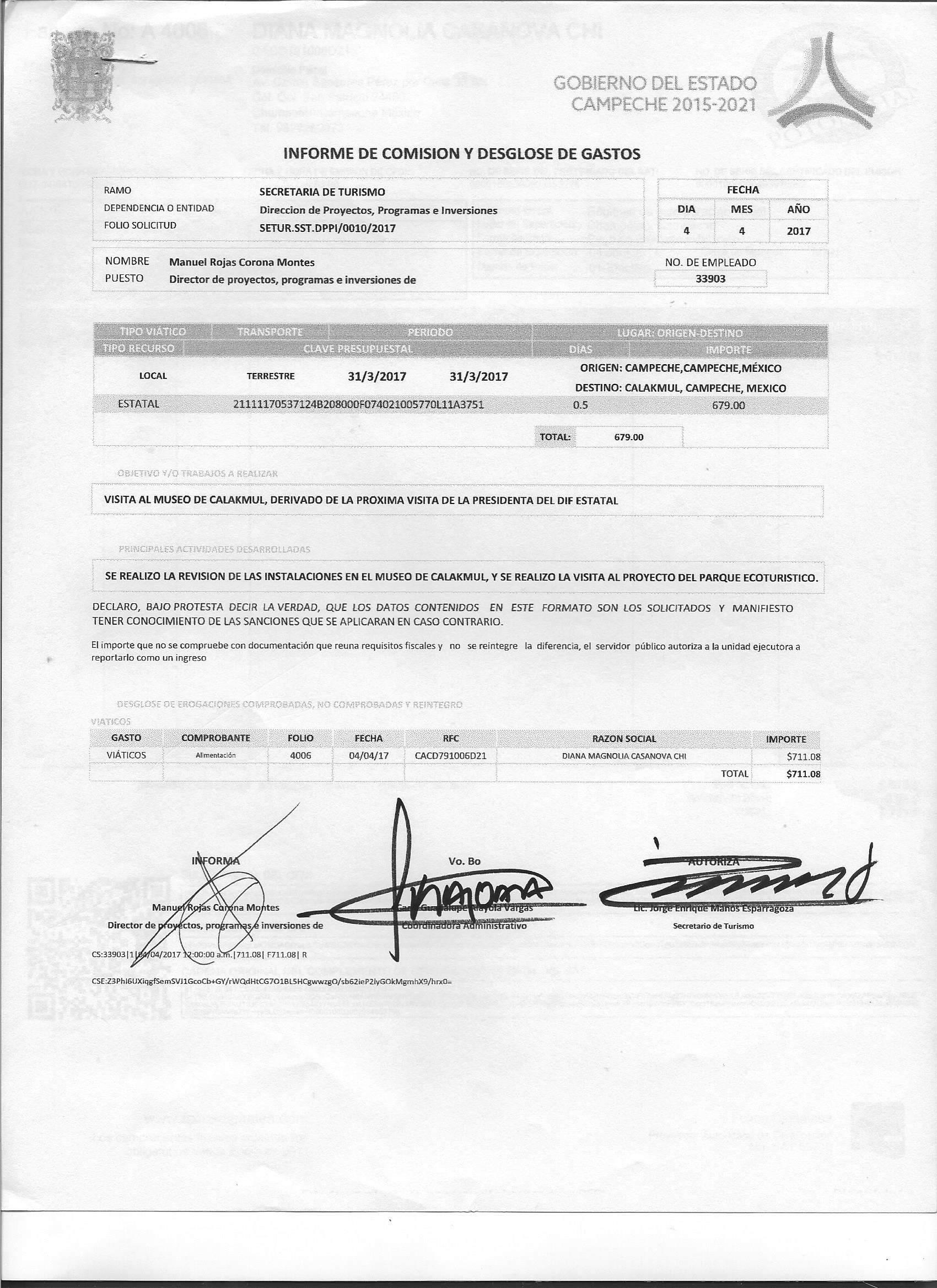 Los gastos de representación y viáticos, así como el objeto e informe de comisión correspondiente;