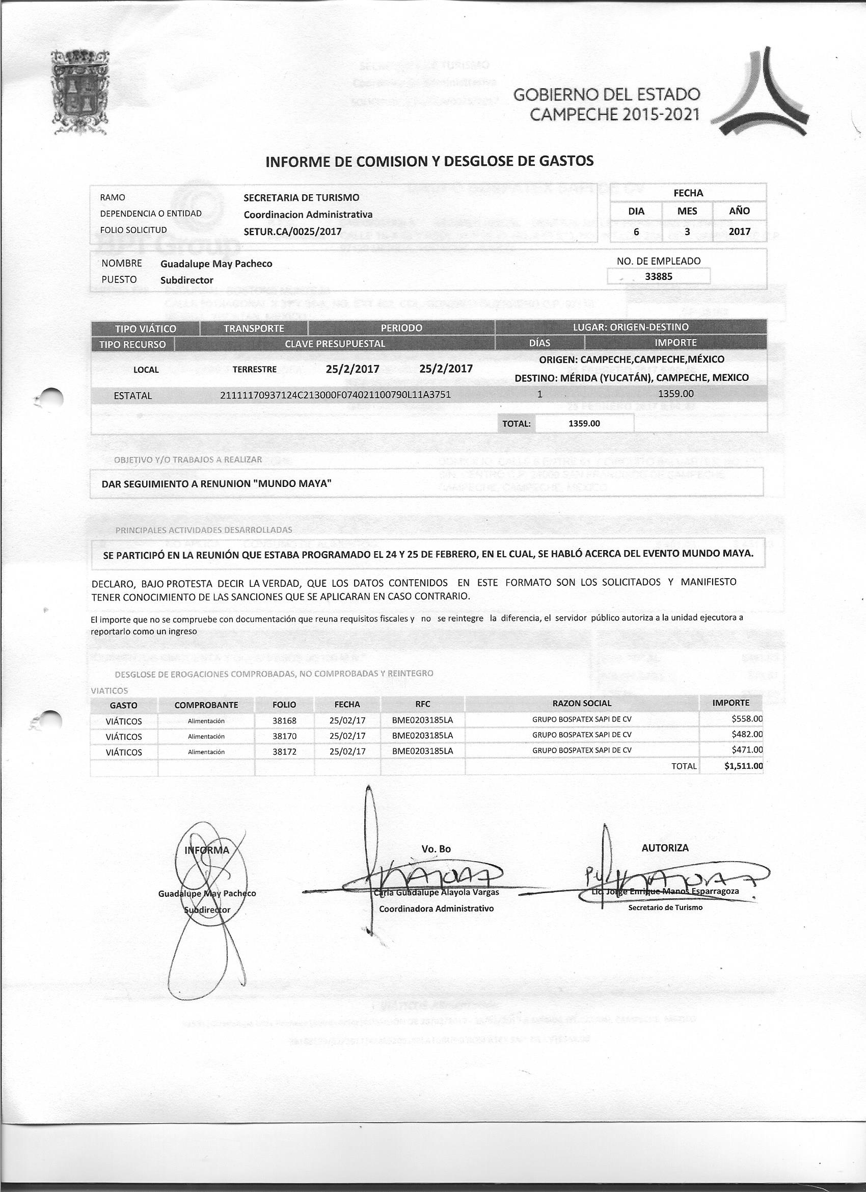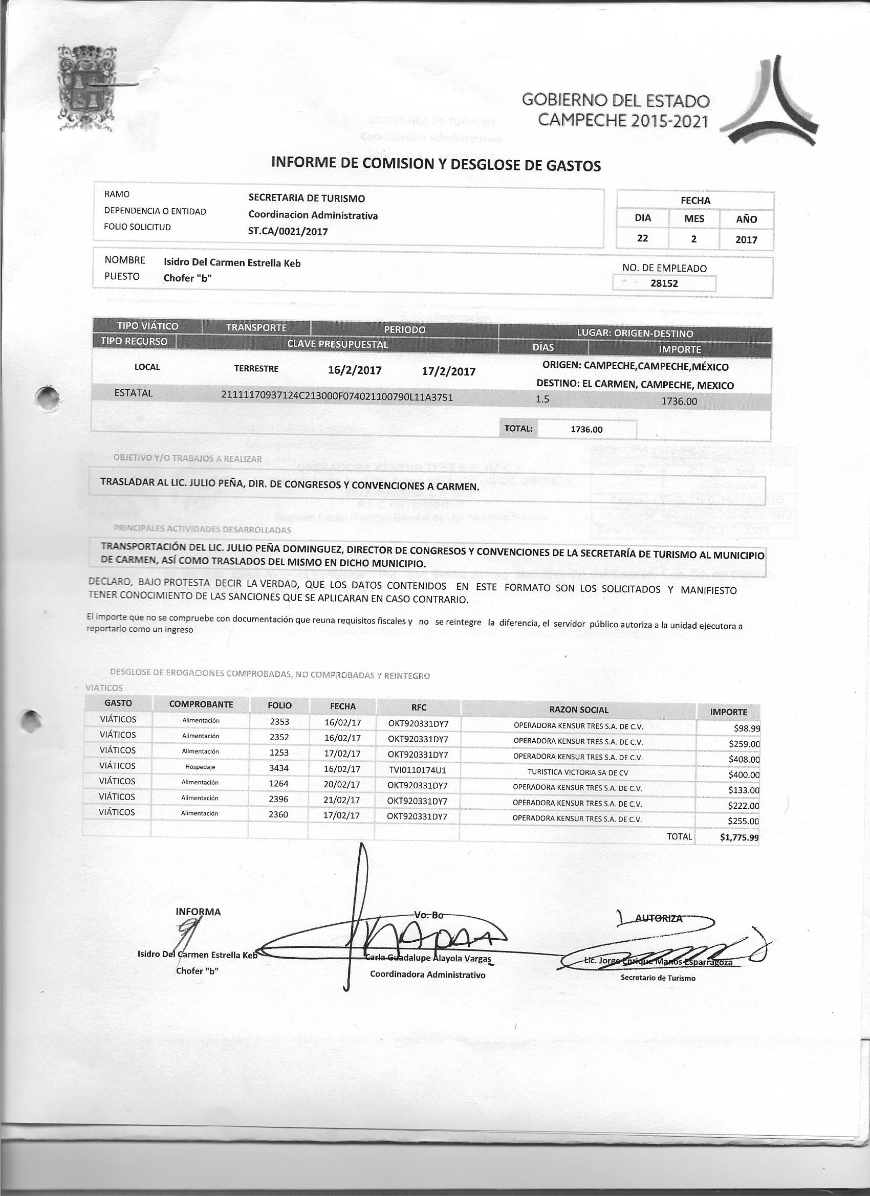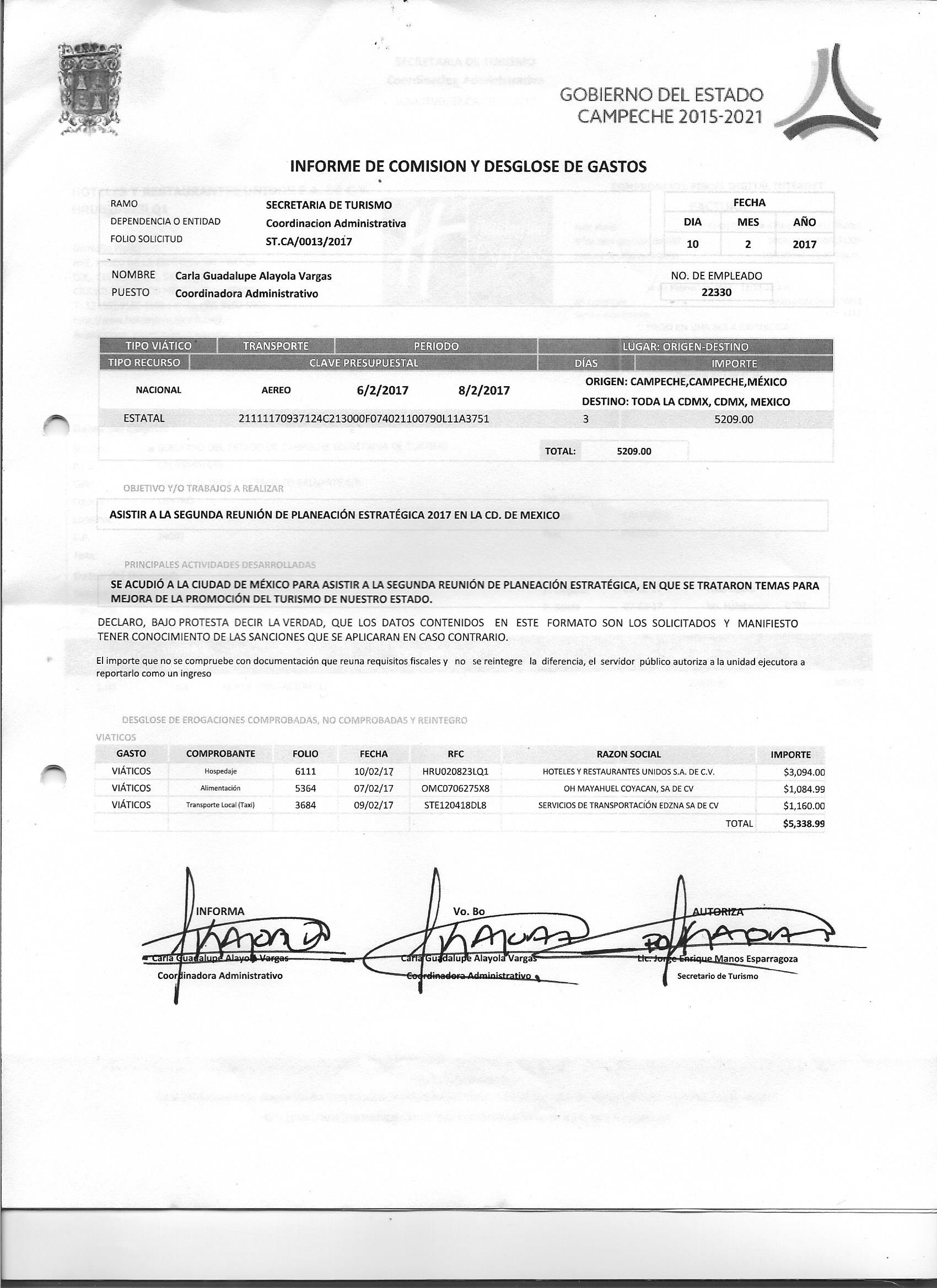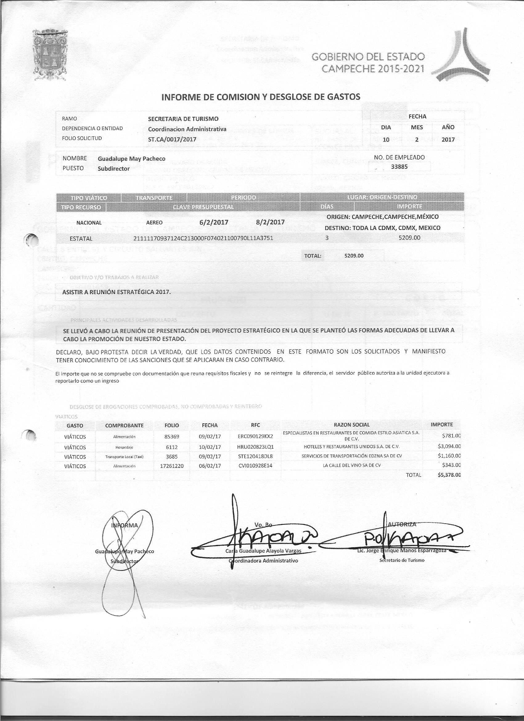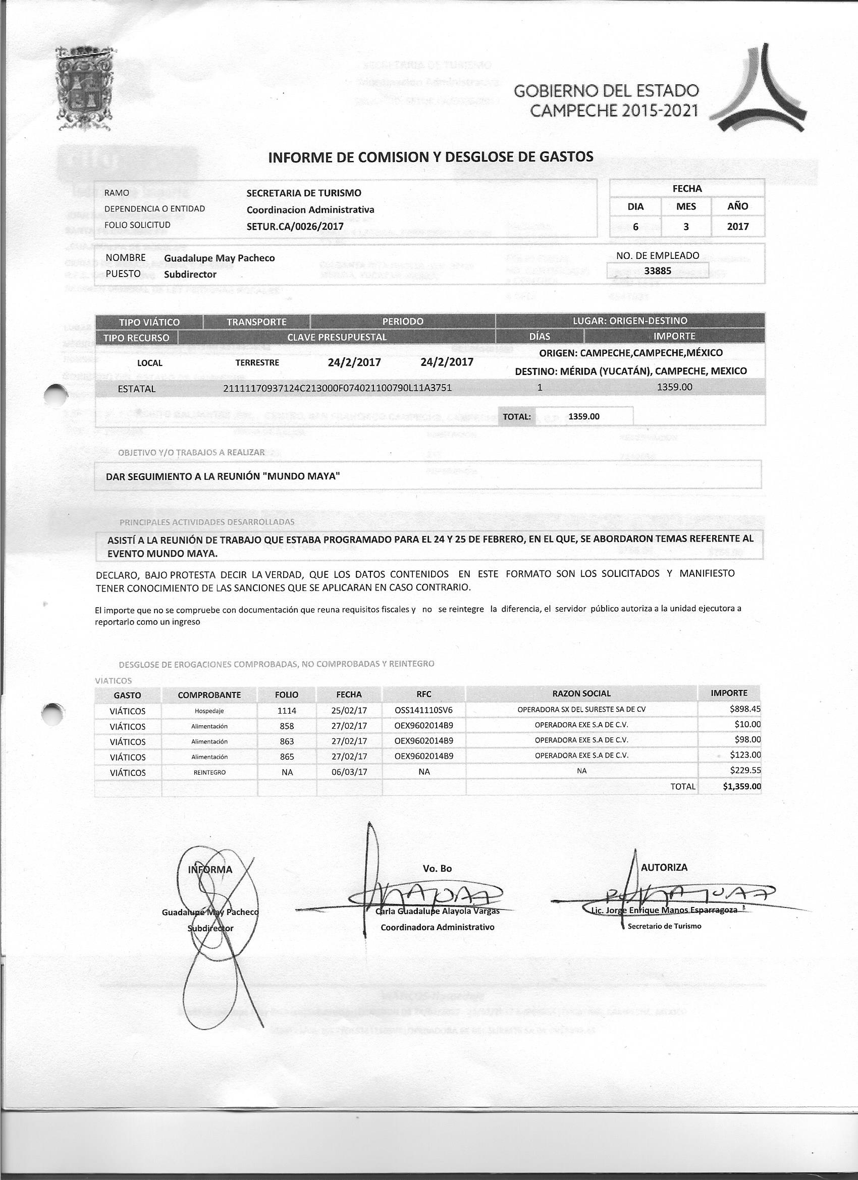 Los gastos de representación y viáticos, así como el objeto e informe de comisión correspondiente;