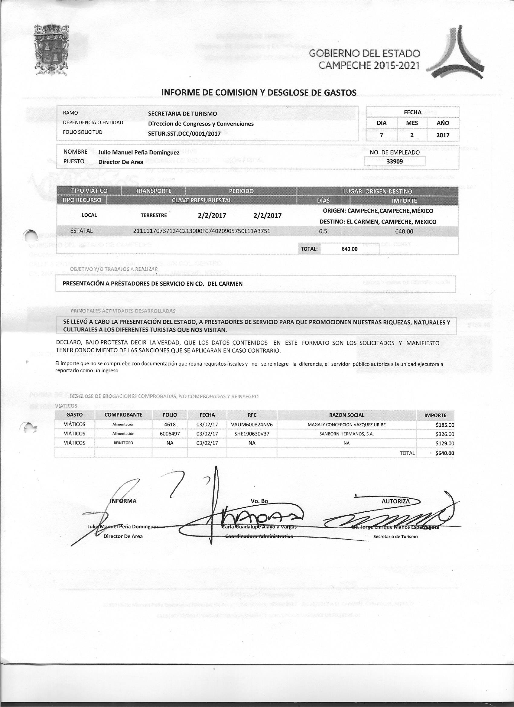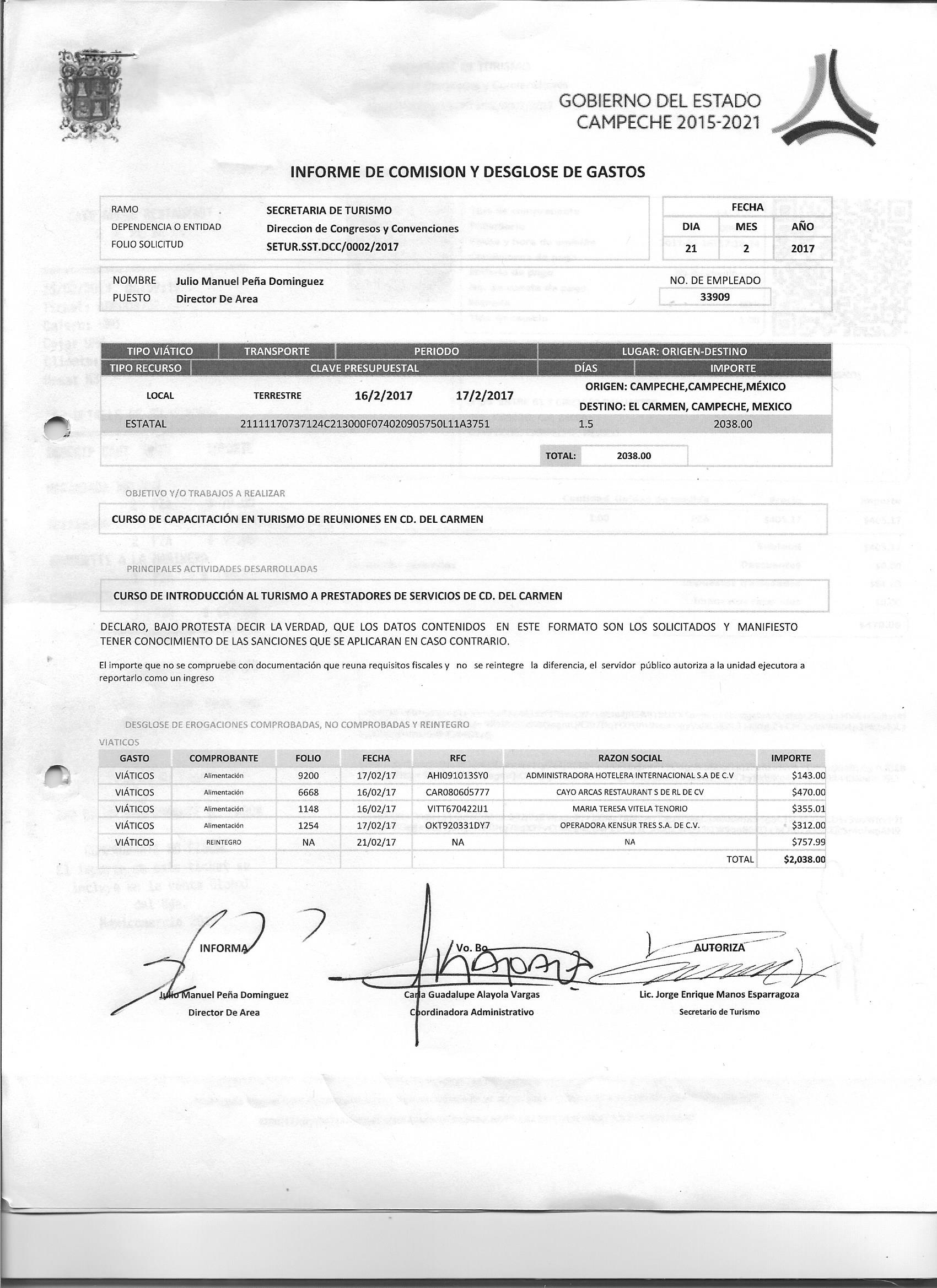 Los gastos de representación y viáticos, así como el objeto e informe de comisión correspondiente;