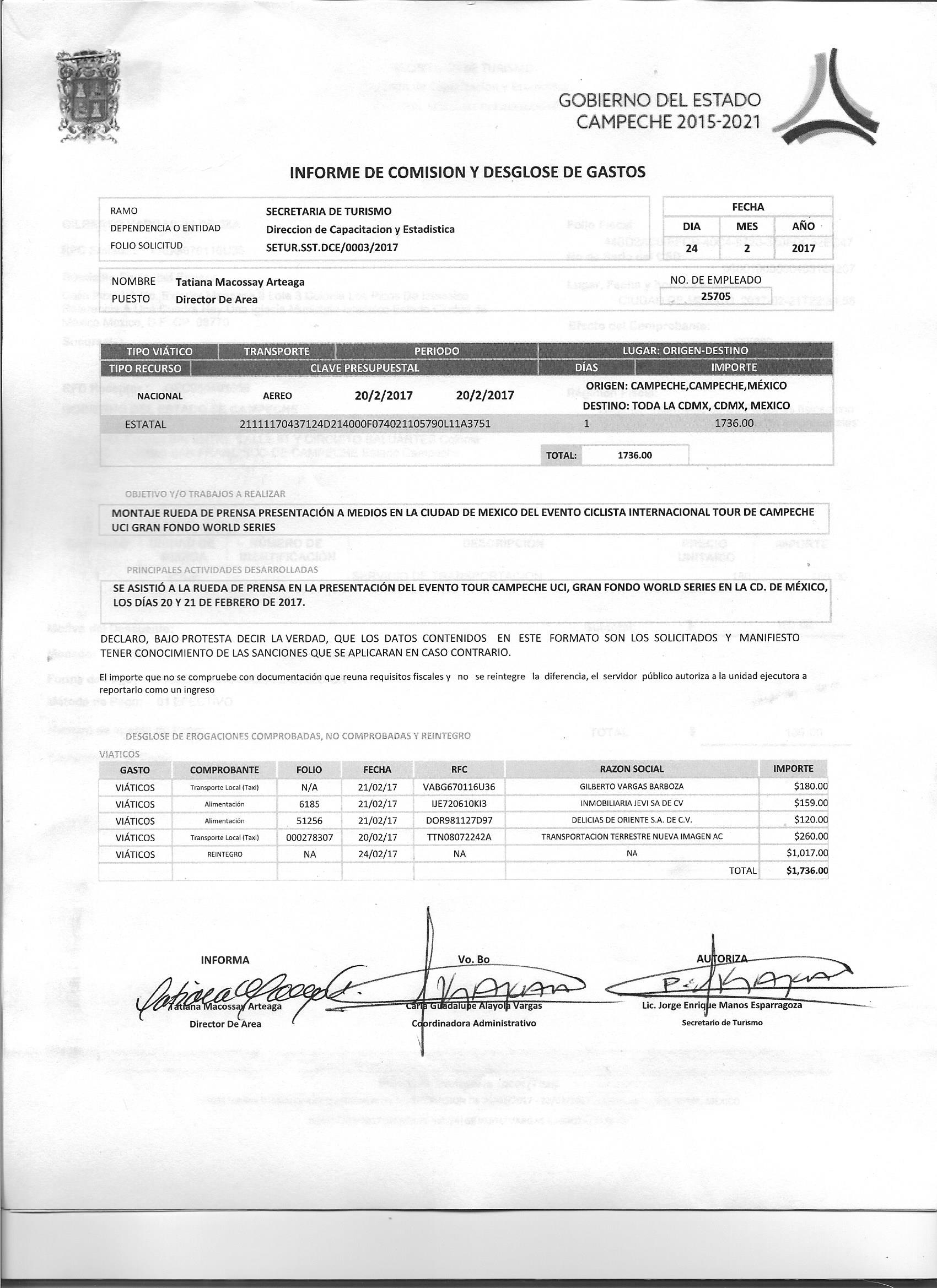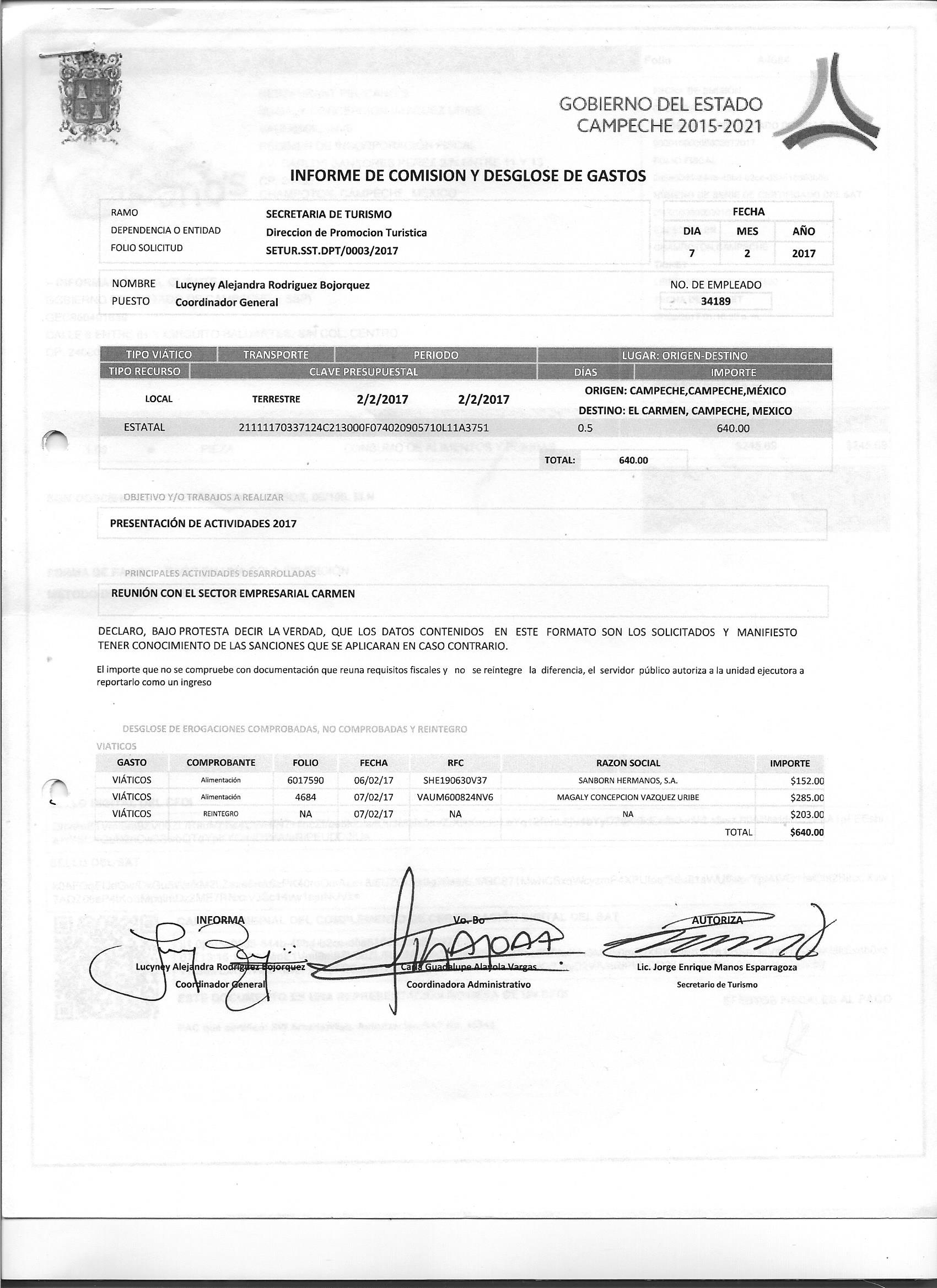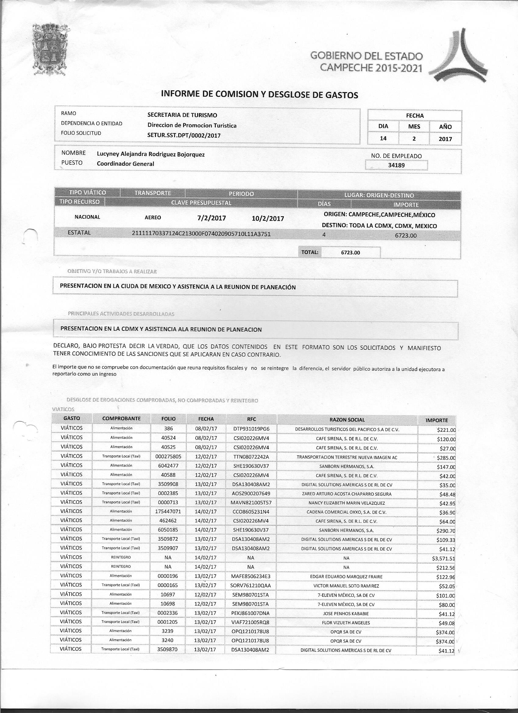 Los gastos de representación y viáticos, así como el objeto e informe de comisión correspondiente;